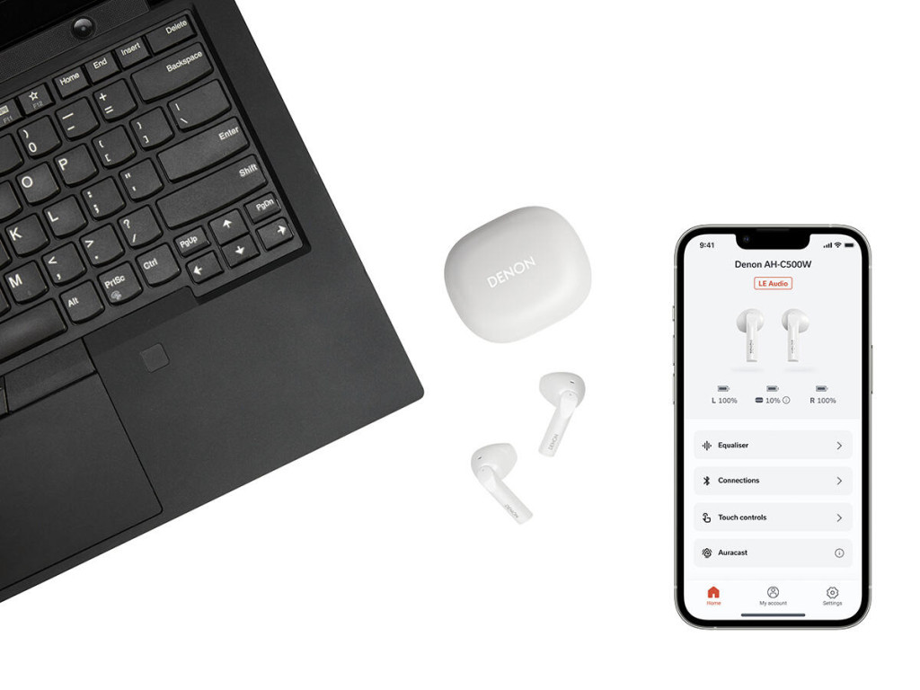 Az AH-C500W a Denon legendás, nagy teljesítményű hangzását az elegáns, izzadságálló fülhallgatókba hozza a dinamikus életmódhoz. Élvezze a könnyű, kényelmes illeszkedést a nyitott fülhallgató kialakításával és az akár 24 órás teljes hallgatási idővel.